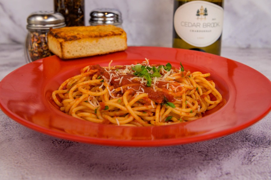 Marinara Monday $29.99 : Spaghetti Bucket with four pieces of Garlic bread and large Garden salad